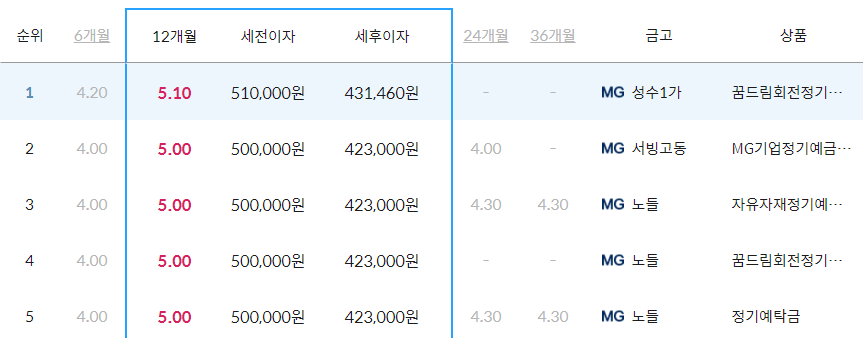 MG기업정기예금(B) 5.00%