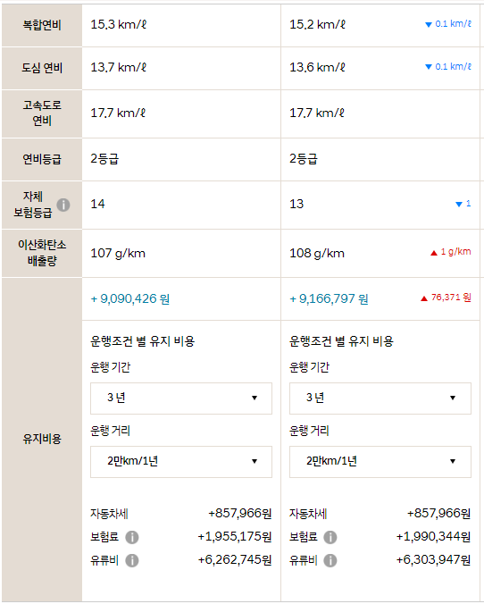 | 최대토크 (kgf·m/rpm) | 15.7 / 4,500 | 15.5 / 4,500 |