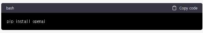 먼저, OpenAI API를 사용하기 위해 필요한 라이브러리를 설치합니다. Python에서는 openai 라이브러리를 설치해야 합니다. 아래 명령어를 사용해 설치할 수 있습니다.